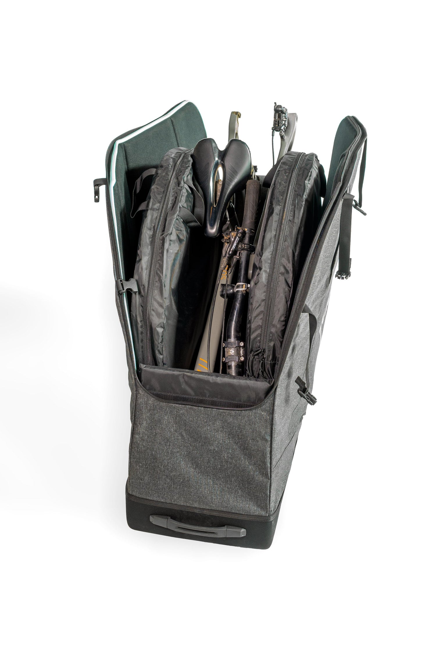 The award-winning B2 Bike Travel Case is the ultimate travel companion for cyclists, designed to simplify bike travel and eliminate oversized baggage fees. New for November 2025 is an updated version of the B2-MTB, now 1.5 lbs lighter and crafted from a 500d Kodra Ballistic Nylon, the latest B2 blends refined aesthetics with rugged performance. Lightweight and durable, it fits most 56cm and smaller gravel or road frames without taking the fork off, and will even fit trail 29ers.