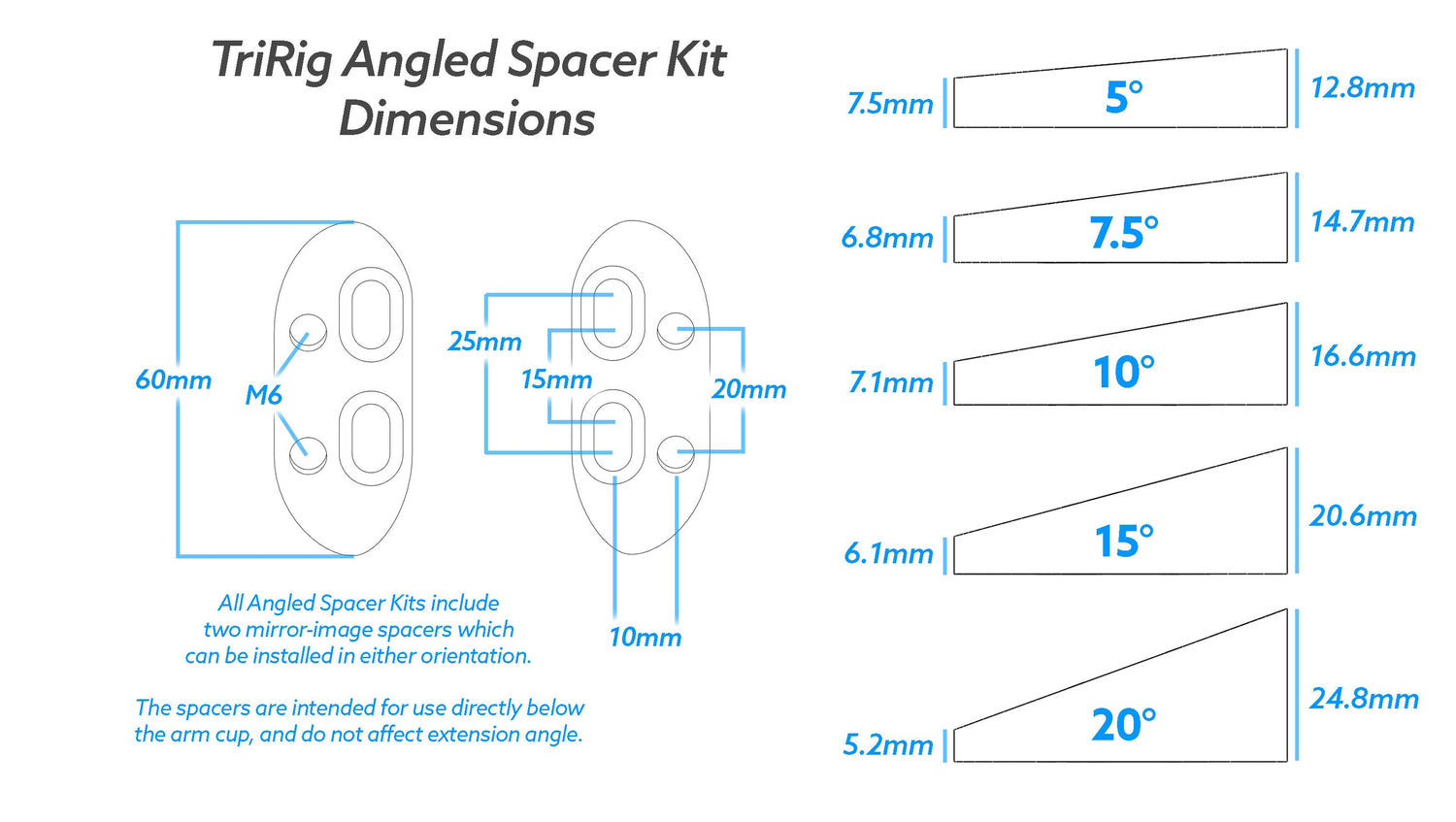 High Angle Kit: Includes 10-degree, 15-degree, and 20-degree spacers.