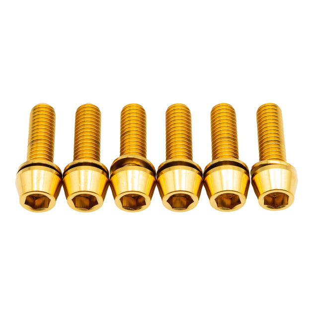 - 6AL-4V grade 5 aerospace titanium bolts for Deity Copperhead stems\n- Includes (6) titanium bolts and washers
