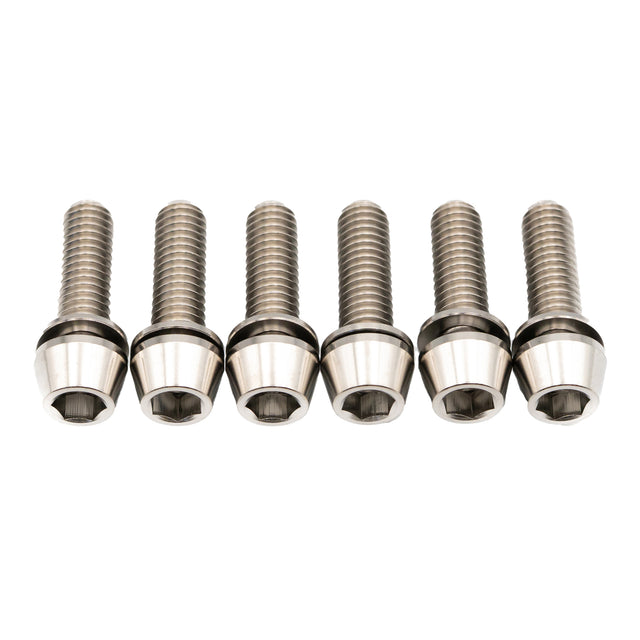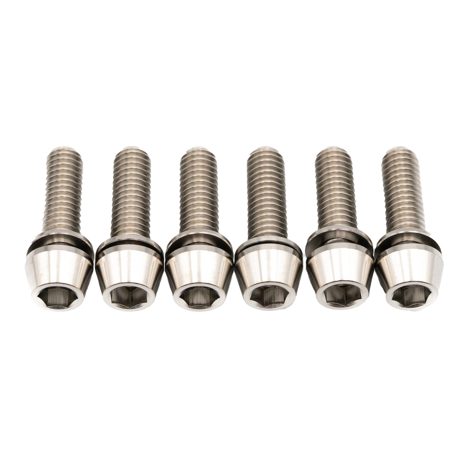 - 6AL-4V grade 5 aerospace titanium bolts for Deity Copperhead stems\n- Includes (6) titanium bolts and washers