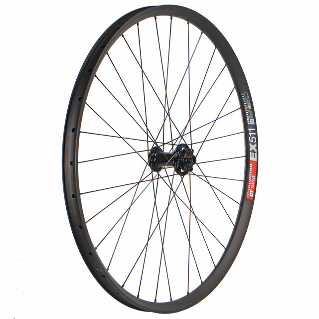 - Wheel Factory hand built versatile wheels\n- DT Swiss EX511 rims are built for the demands of World Cup Enduro racing\n- 30mm wide tubeless compatible rim, laced with DT PHR washer system\n- Lightweight and offers superior DH and Enduro performance\n- A nearly seamless welding process and a special anodizing treatment boost strength and durability\n- Bitex BX212 F/R Hubs offer premium performance and finish at an attainable price point\n- 54 POE 6 Pawl driver body with HG, MS, or XD freehubs available\n- All hubs use IS 6-bolt disc rotor mount\n- Built with DT Swiss Competition double butted spokes (2.0/1.8/2.0) and brass DT Swiss Squorx nipples\n- Hand laced and trued in the USA