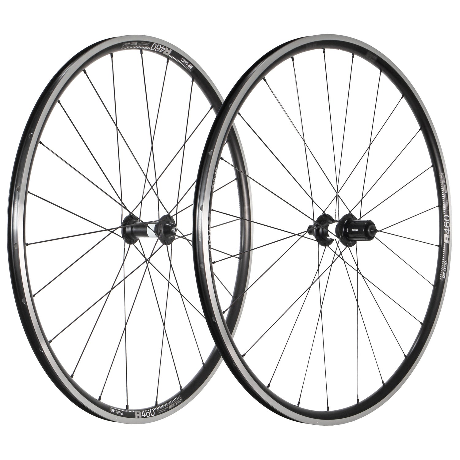 - Wheel Factory hand built wheels\n- DT Swiss R460 rim is tubeless compatible with a sleeved joint, 18mm ID, 23mm OD width\n- DT Swiss 350 hubs, steel bearings, non-disc\n- Inc 36t ratchet that can be easily upgraded to the 54t high engagement option\n- Built with Sapim CX-Ray spokes and alloy DT Swiss Squorx nipples\n- QR skewers NOT included\n- Hand laced and trued in the USA