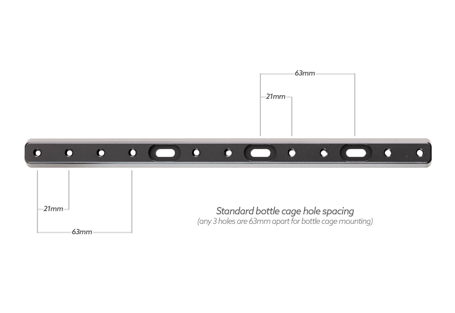 Designed with practicality in mind, the Multi-Bottle BTA Rail is compatible with standard bottle cage spacing, ensuring seamless integration with a wide range of bottle cages. Its base mounting bolts align perfectly with standard bottle cage bosses, making installation effortless.