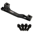 - Precision machined 6061 aluminum for tighter tolerances than stock cast adapters, minimizing pad/rotor alignment issues and pad rubbing\n- 4 Bolt Design utilizes four equal-length titanium bolts eliminating the need for cup/cone washers and providing an easier installation experience\n- Choose from four adapter sizes (+20mm, +23mm, +40mm, +43mm)\n- Kit includes (1) adapter, (4) titanium black bolts and washers\n- Made in USA