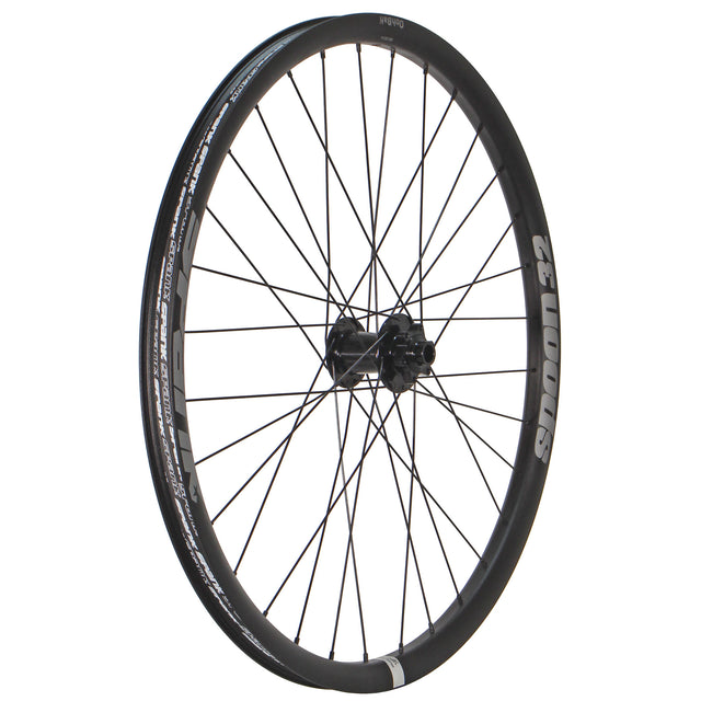 - Wheel Factory hand built wheels\n- Hope's Pro5 hub features an improved drive mechanism with higher engagement and lower drag\n- 108 POE using a 6 pawl (3 engage at a time) driver mechanism\n- Convertible between 20x110mm (T-A), 9x100mm (Q/R) or 15x100 (T-A) with separate kits\n- Spank Spoon 32 Rims are highly versatile, bombproof all-purpose rim delivers exceptional strength at a remarkable value\n- 27mm internal/32mm external width \n- Tubeless compatible \n- Built with 2.0mm straight gauge DT Swiss Champion spokes with brass DT Swiss Squorx nipples\n- Hand laced and trued in the USA