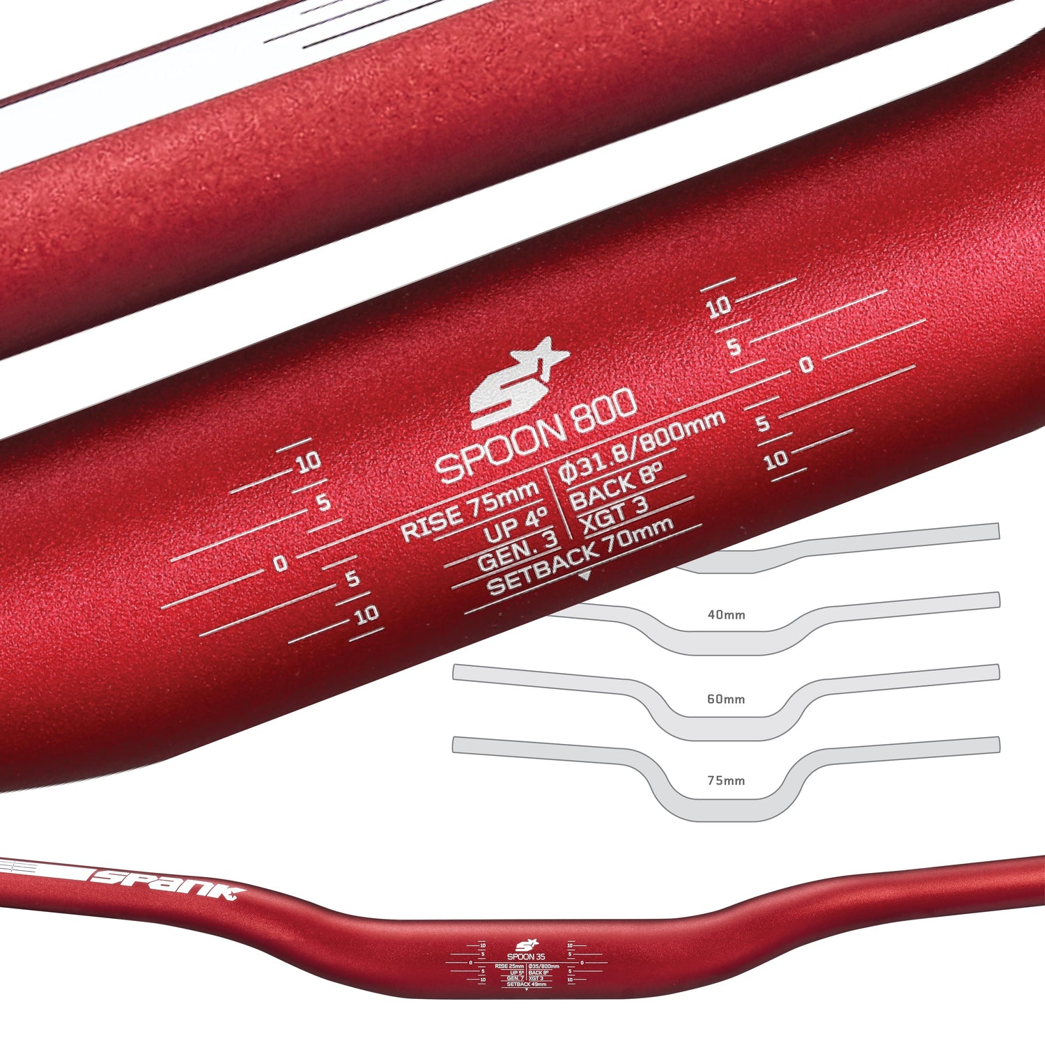 A Spank quality 31.8mm handlebar that won't cost you an arm and leg? Freeride-inspired all mountain geometry makes the bar extremely versatile, and the Spoon 800 is rock-solid whether you live for trails or bike parks. 800mm wide, you can dial your fit as the Spoon 800 is adjustable to 740mm.