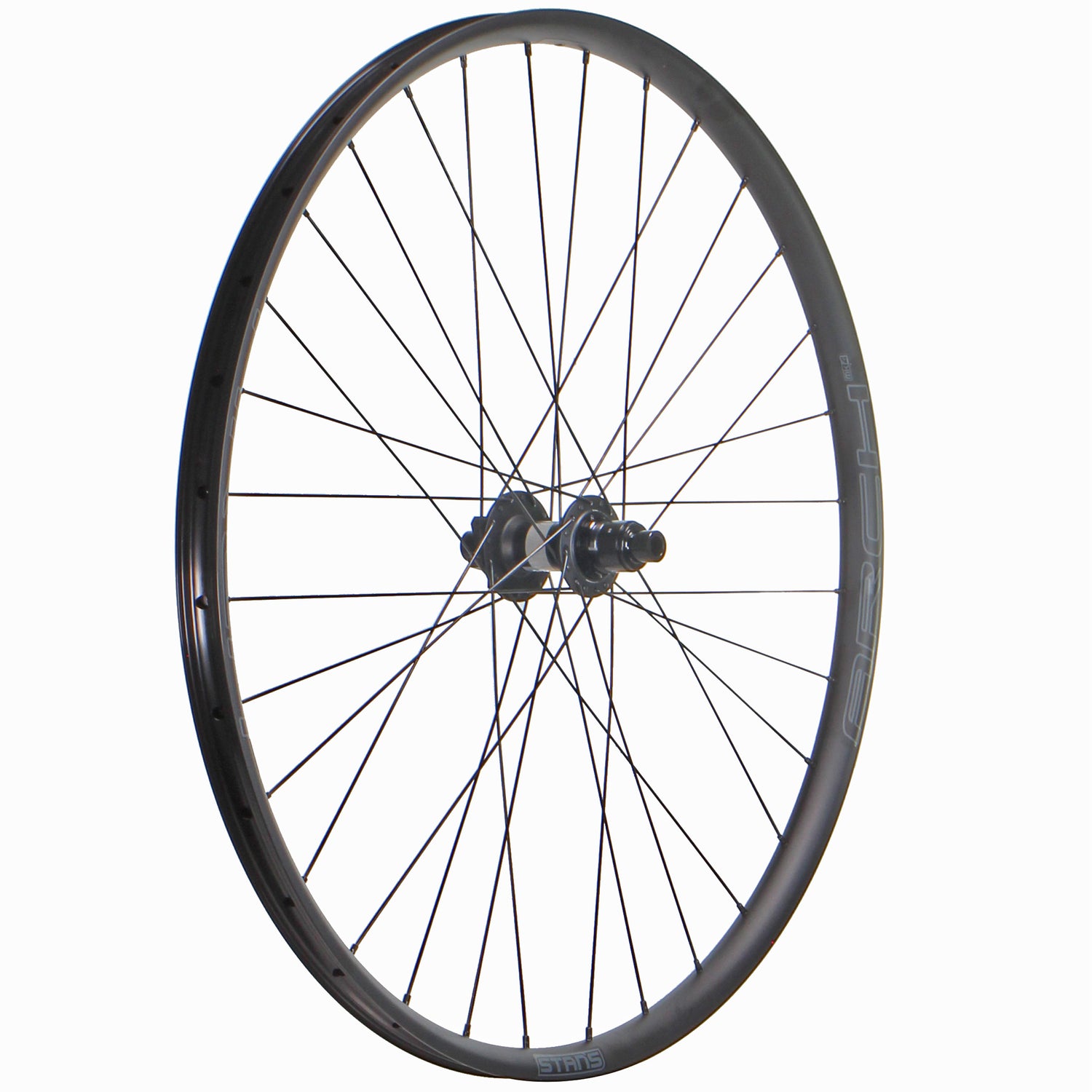 - Wheel Factory hand built versatile wheels\nStan's Arch MK4 rims feature a 28mm wide asymmetric rim designed to build an even stronger overall wheel\n- (BST-Asymmetric) Bead Socket Technology Asymmetric features a wider inside rim cavity with shorter sidewalls, equalizing resistance to dents and tire bead retention on both sides of the rim in the worst rock gardens and hardest cornering\n- Durable 6069 aluminum with a welded joint and reinforced spoke bed\n- DT Swiss 370 hubs with updated Ratchet LN driver mechanism\n- DT's legendary star ratchet system is now available at the most affordable price point yet\n- DT 370 hubs are compatible with all Ratchet LN FHB bodies as well as DT's 36 and 54 POE ratchet upgrade options\n- All hubs use IS-6B disc brake mounts\n- Built with DT Swiss Competition double butted spokes (2.0/1.8/2.0) and brass DT Swiss Squorx nipples\n- Hand laced and trued in the USA