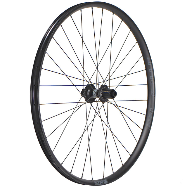 - Wheel Factory hand built versatile wheels\nStan's Flow MK4 rims feature 30mm wide asymmetric rim designed to build an even stronger overall wheel\n- (BST-Asymmetric) Bead Socket Technology Asymmetric features a wider inside rim cavity with shorter sidewalls, equalizing resistance to dents and tire bead retention on both sides of the rim in the worst rock gardens and hardest cornering\n- Durable 6069 aluminum with a welded joint and reinforced spoke bed\n- NEW DT Swiss 370 hubs with their updated Ratchet LN driver mechanism\n- DT's legendary star ratchet system is now available at the most affordable price point yet\n- DT 370 hubs are compatible with all Ratchet LN FHB bodies as well as DT's 36 and 54 POE ratchet upgrade options\n- All hubs use IS-6B disc brake mounts\n- Built with DT Swiss Competition double butted spokes (2.0/1.8/2.0) and brass DT Swiss Squorx nipples\n- Hand laced and trued in the USA