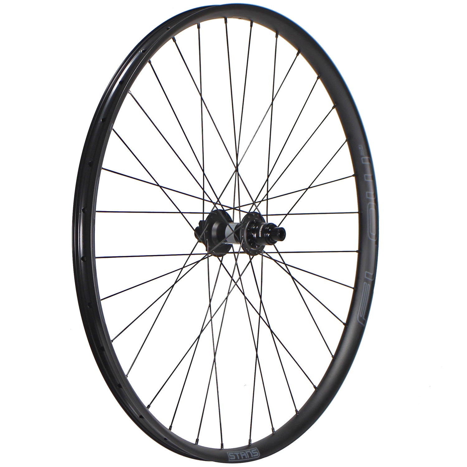 - Wheel Factory hand built versatile wheels\nStan's Flow MK4 rims feature 30mm wide asymmetric rim designed to build an even stronger overall wheel\n- (BST-Asymmetric) Bead Socket Technology Asymmetric features a wider inside rim cavity with shorter sidewalls, equalizing resistance to dents and tire bead retention on both sides of the rim in the worst rock gardens and hardest cornering\n- Durable 6069 aluminum with a welded joint and reinforced spoke bed\n- NEW DT Swiss 370 hubs with their updated Ratchet LN driver mechanism\n- DT's legendary star ratchet system is now available at the most affordable price point yet\n- DT 370 hubs are compatible with all Ratchet LN FHB bodies as well as DT's 36 and 54 POE ratchet upgrade options\n- All hubs use IS-6B disc brake mounts\n- Built with DT Swiss Competition double butted spokes (2.0/1.8/2.0) and brass DT Swiss Squorx nipples\n- Hand laced and trued in the USA