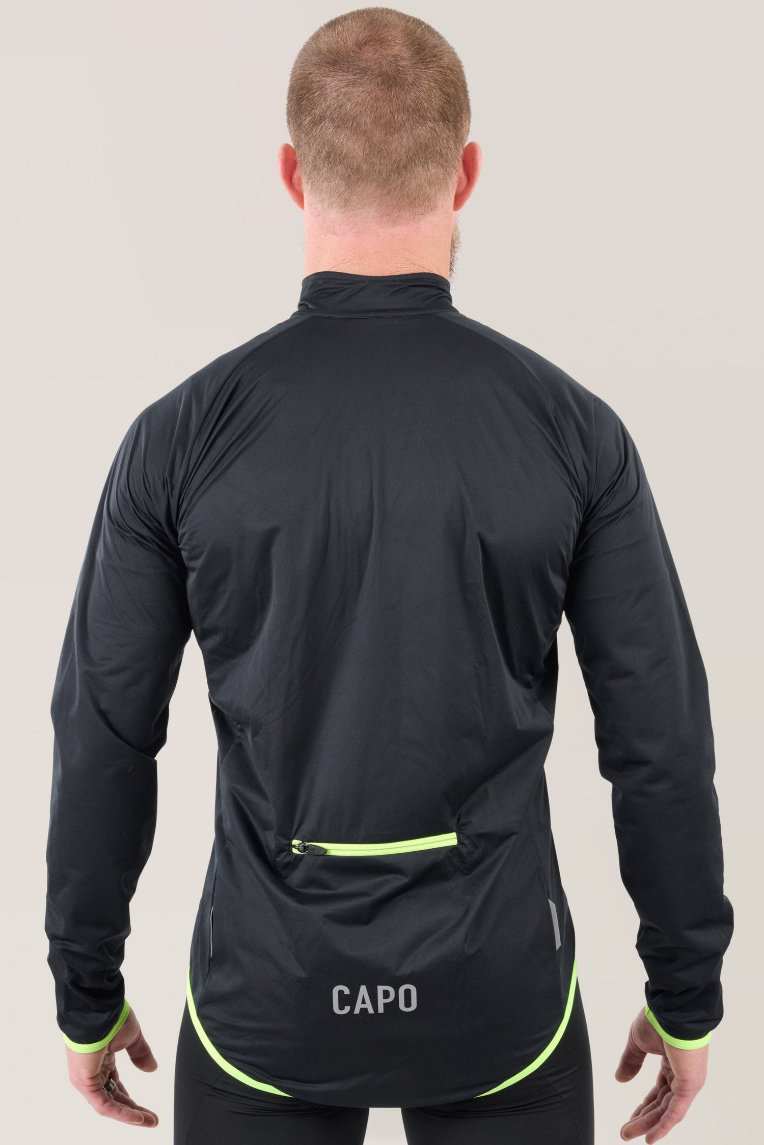 Equipped with a rear security pocket that doubles as a reversible, zippered storage pouch for your jacket, this jacket is as practical as it is performance-oriented. Plus, reflective insert tabs, logos, and fluo yellow trim enhance your visibility for added safety on the road.