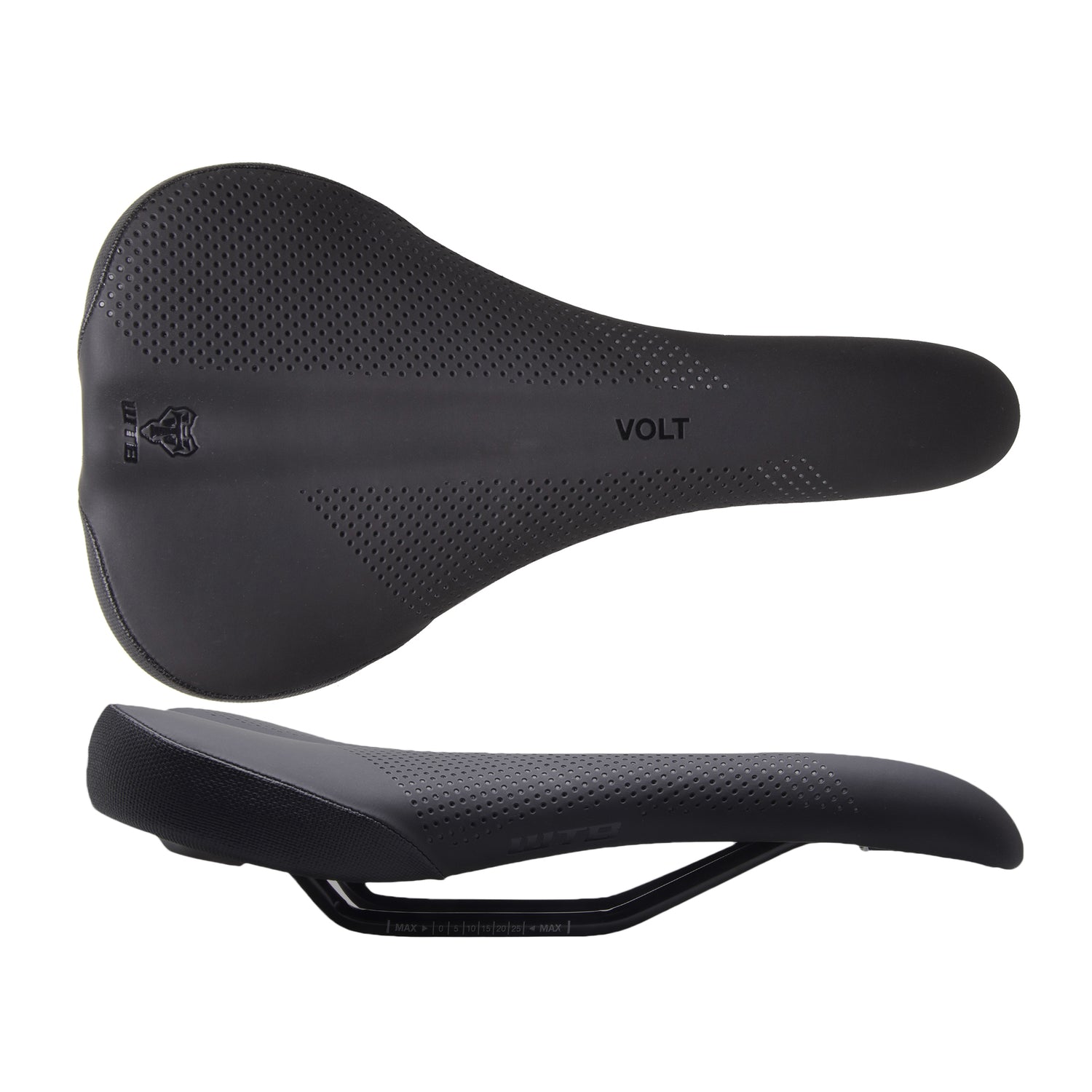 - The Volt is WTB's most popular mountain saddle. Shaped for speed and comfort, time tested and proven, the Volt makes for an incredibly versatile saddle that has gained endless acclaim among riders\n- Thin line shape with Comfort Zone cut-out and Love Channel for soft tissue relief\n- Fusion Form base allows model-specific amounts of fiber to be infused into the nylon to create a flex profile that balances comfort and support\n- Slight whale tail and gentle drop to the nose\n- Stiff pedalling platform with built-in bump absorption\n- Durable ABR corners resist rips and tears\n- Carbon & Titanium: flex-tuned shell and DNA padding\n- CroMoly: flex-tuned shell and HLX+Gel padding\n- Steel: flex-tuned shell and DNA-X padding\n- Third party online sales are strictly prohibited by manufacturer