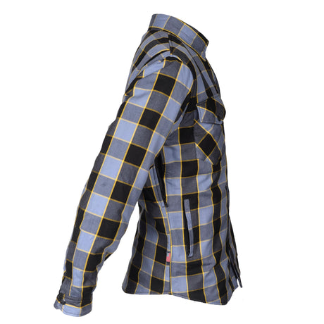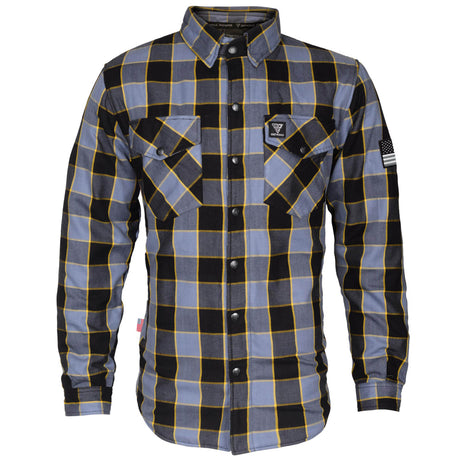 Protective Flannel Shirt - Grey Checkered and Yellow Stripes with Pads
