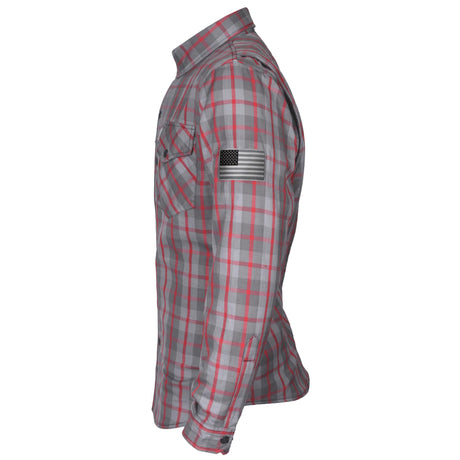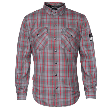 Protective Flannel Shirt - Grey and Red Stripes with Pads