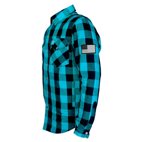 Protective Flannel Shirt - Aqua Blue Checkered with Pads