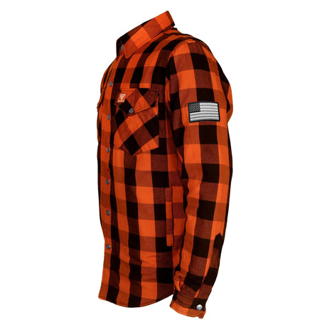 Protective Flannel Shirt - Orange and Black Checkered with Pads