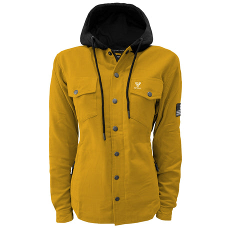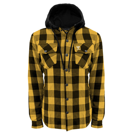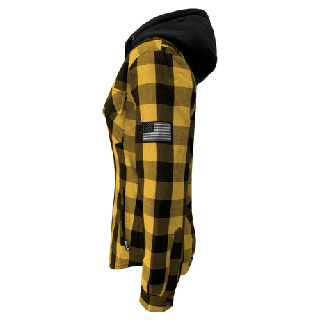 Protective Flannel Hoodie for Women - Yellow and Black Checkered with Pads
