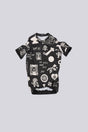 Black jersey with an all over print.