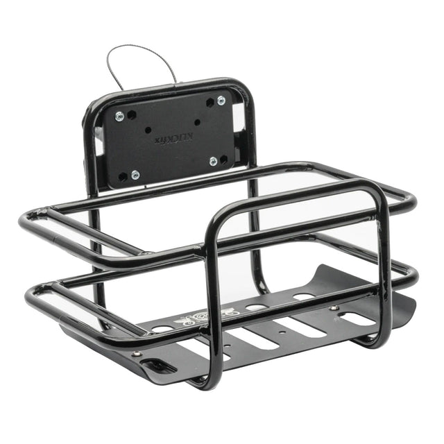 Portland Design Works Bodega Basket. PDW Bodega Basket features all-aluminum construction for all-weather durability. Easy to use Klickfix bracket securely holds rack to handlebars and allows easy removal for shopping. Integrated lock holder