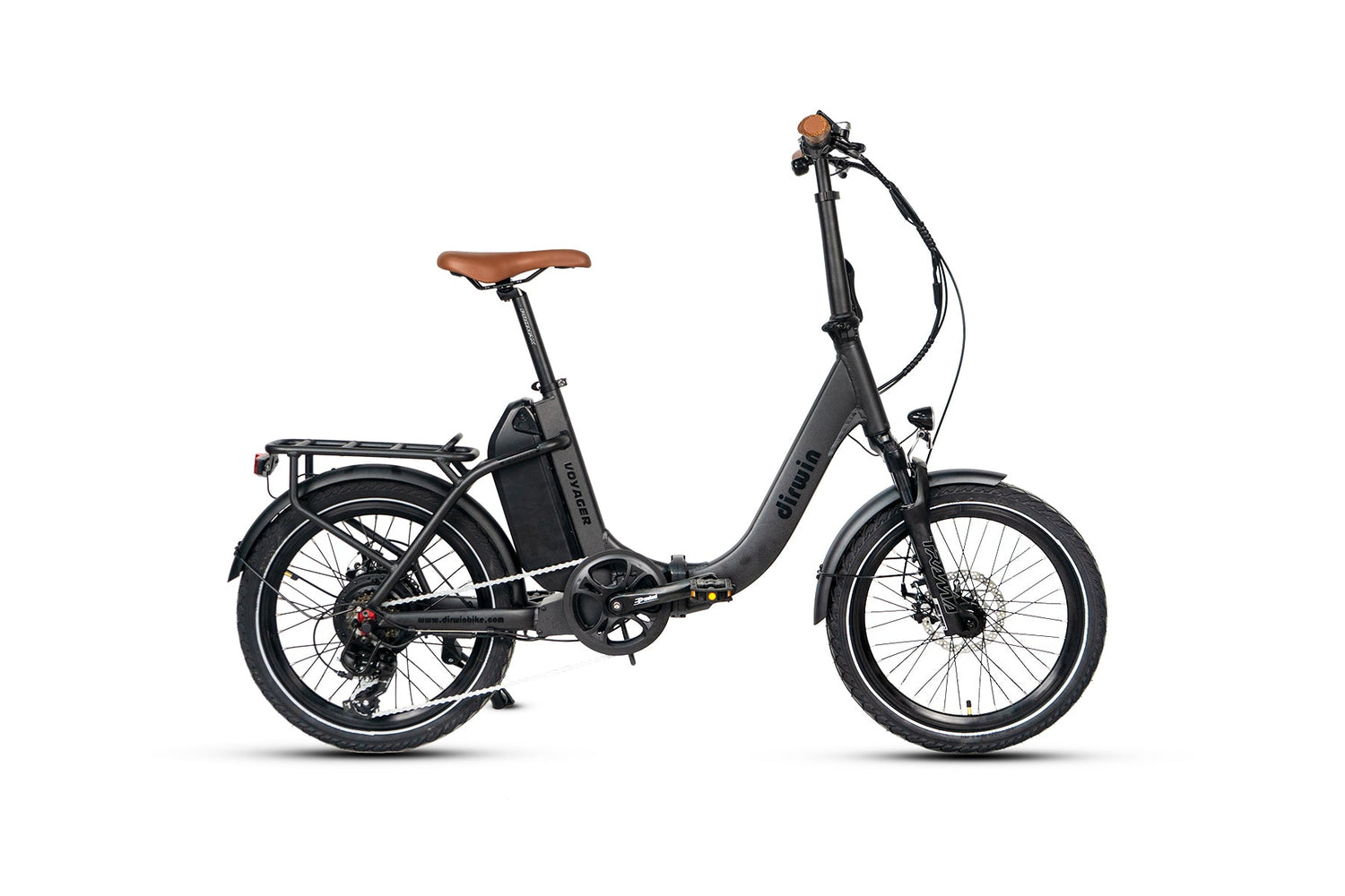 With a powerful 48V 500W brushless motor and 48V 12.8Ah lithium battery, the Voyager Folding Electric Bike offers a range of up to 45 miles and a top speed of 26 MPH. This foldable and compact bike features an LCD screen display with USB-C charging port, Shimano 7 speed, rear rack, suspension fork, and 20" x 2.125" tires. Perfect for commuting, it weighs only 59 lbs and can carry a max load of 250 lbs. Available in white and black colors.