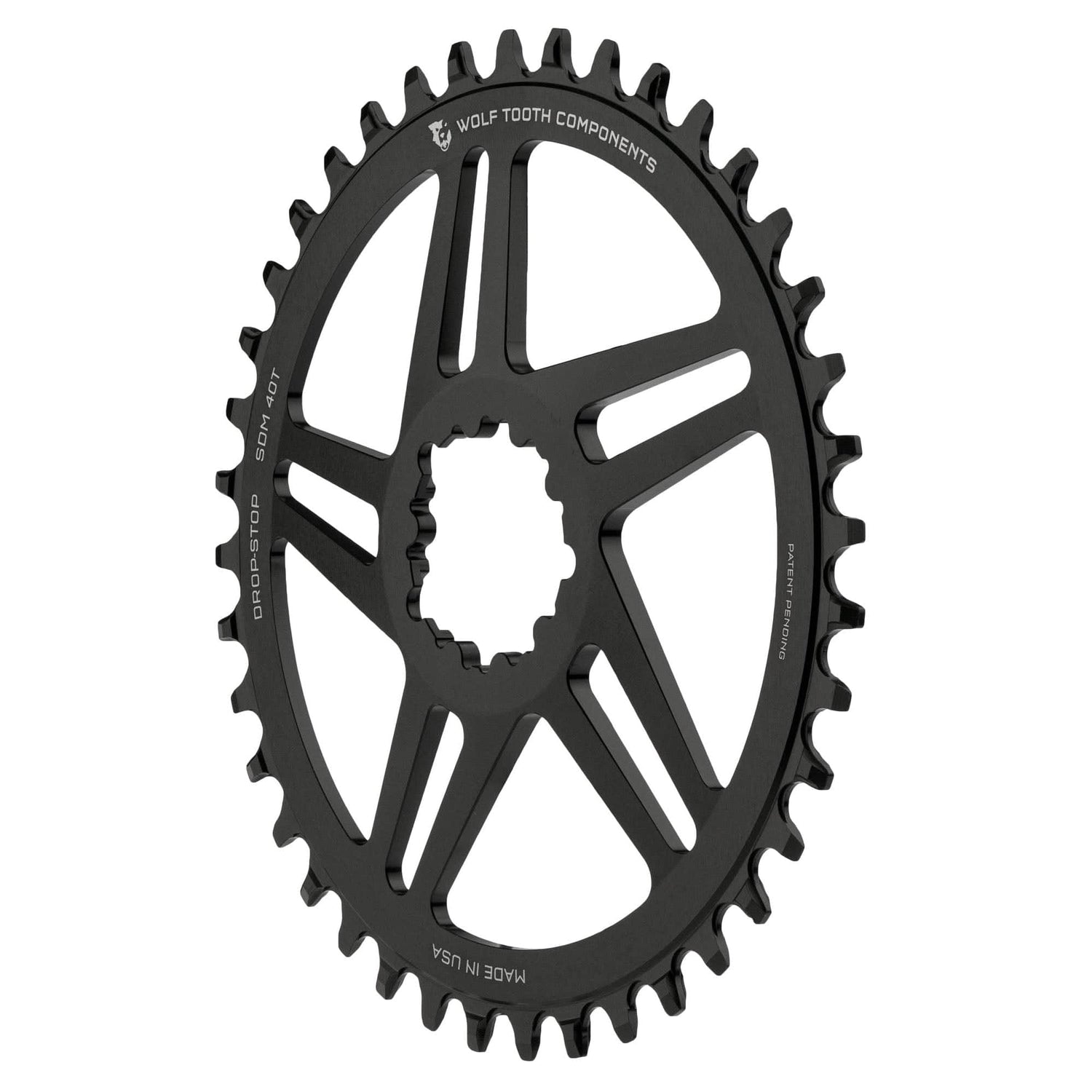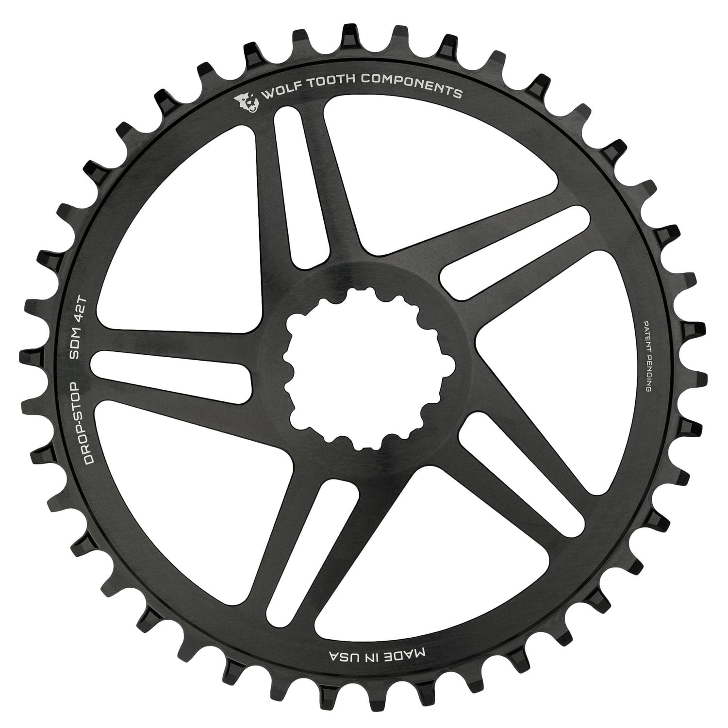 • Wolf Tooth’s patented Drop-Stop® wide/narrow tooth profile for the ultimate chain retention and mud shedding ability