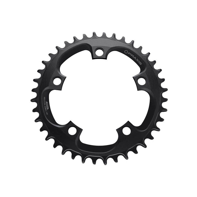 - Narrow Wide tooth profile for better chain retention \n- 5x110mm BCD ring are compatible with 110BCD spider-based power meters such as Power2Max, SRM and Quarq\n- 3-bolt SRAM DM version has 45.5mm chainline on DM road, 48mm chainline for Praxis DM GR 1x cranks\n- In rough terrain, or just for security, use of an upper guard is still recommended\n- Compatible with 1x10/11/12sp Shimano, KMC and SRAM regular or Flat Top chains\n- Not compatible with Campagnolo 10/11/12/13 speed \n- Unauthorized online sales prohibited by manufacturer