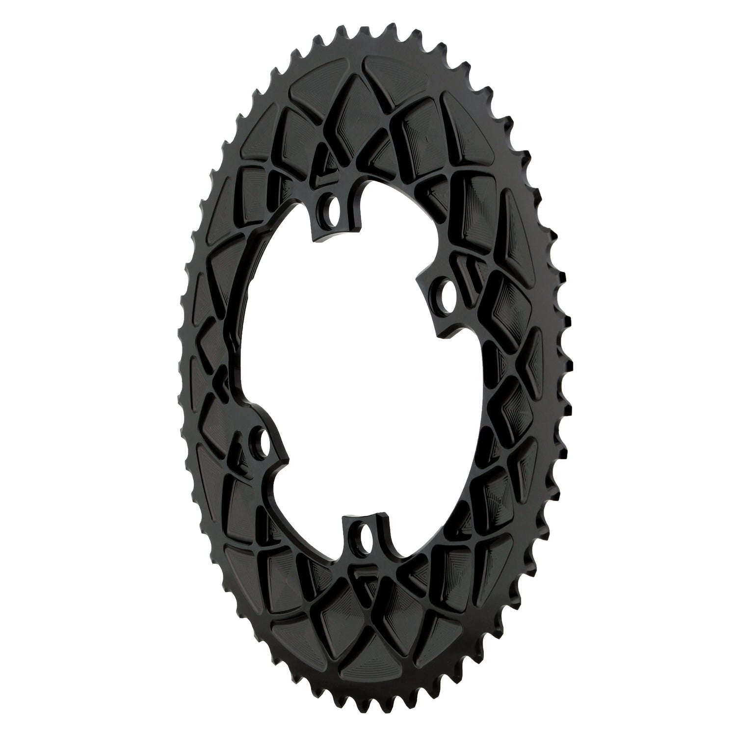 - Compatibility: Shimano Dura-Ace 9100, R9120, R9150 & R9170 Di2 and Ultegra 8000, R8020, R8050 & 8070 Di2, 105- R7000, R7020, R7070. They can also retrofit all 9000 and 6800 series cranks but use bolt covers for best appearance. 10 / 11 / 12sp compatible\n- For outer chainring please order "long bolts" from us OR bolt covers. Changing inner chainring to oval only? use original bolts\n- Inner and outer oval chainrings are optimized with smooth shifting in mind\n- Features smooth angled surfaces, (6) up-shifting ramps (outer ring), and (12) down-shifting points (outer ring)\n- Oval rings help the rider to spin smoother and more efficiently\n- Example: 32t is equivalent to 30t at dead spot and 34t at the power zone\n- Works with 2x chainring systems and does not require any modification to the front derailleur for use\n- Designed in UK, manufactured in Poland\n- Third party online retailers must be preapproved by manufacturer