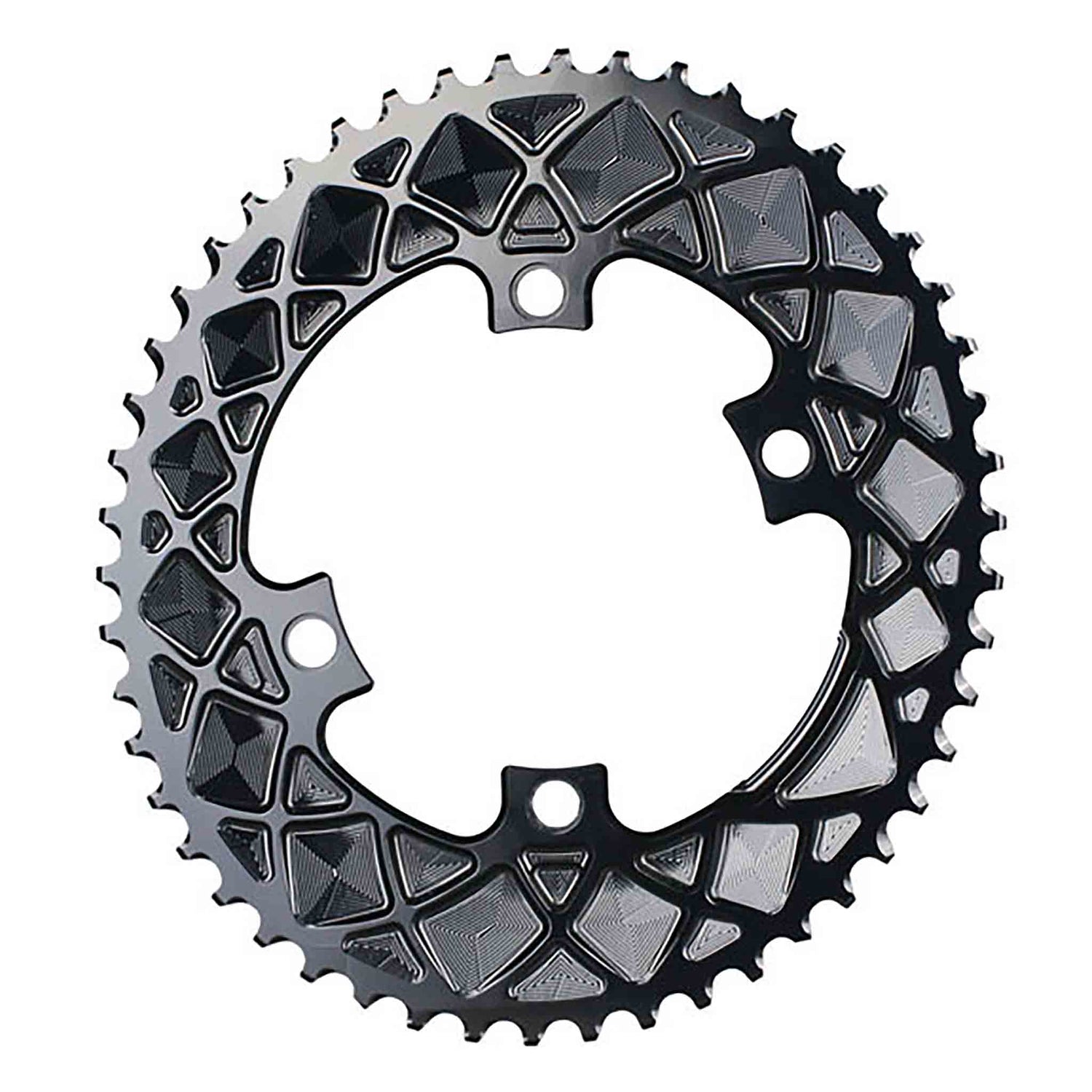 - Shimano Dura-Ace 9000, Ultegra 6800, Shimano 105 5800, Tiagra 4700. Compatible with Di2 & Pioneer, SRM and other power meters\n- Inner and outer oval chainrings are optimized with smooth shifting in mind\n- Features smooth angled surfaces, (6) up-shifting ramps (outer ring), and (12) down-shifting points (outer ring)\n- Oval rings help the rider to spin smoother and more efficiently\n- Example: 32t is equivalent to 30t at dead spot and 34t at the power zone\n- Works with 2x chainring systems and does not require any modification to the front derailleur for use\n- Designed in UK, manufactured in Poland\n- Third party online retailers must be preapproved by manufacturer