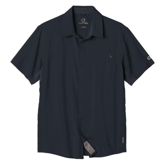 Complete your cycling wardrobe with this moisture-wicking, sun blocking Protocol short sleeve top. A classic styled, snap up solid color riding shirt pairs well with any bottom on or off the trail. Highlights include vented under arms, a rear zippered pocket and sun glass wipe.
