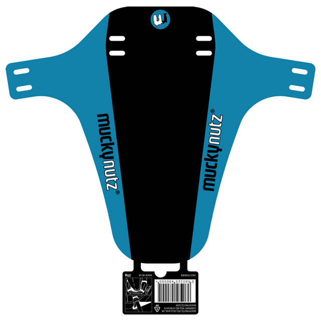 Mucky Nutz Face Fender - Blue. Lightweight discreet and very effective the Face Fender is a simple front mud guard for mountain bikes made from 100% recycled plastic.Can be used on all wheel sizes