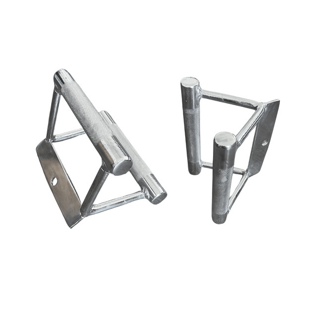 Seated Row / Close Grip Chin Cable Attachment - Muscle D Fitness - Triangle - Chrome Finish, Knurled Handles