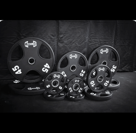 Hard Chrome Olympic Bar and Olympic Urethane Weight Plate Sets