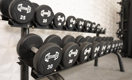 Pro Urethane Dumbbells - Muscle D Fitness - Quality Knurled Handles - Solid Design