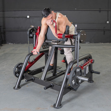 Excel Seated Biceps - Muscle D Fitness - Plate Load Arm Curl - Piston Assisted Seat Adjustment