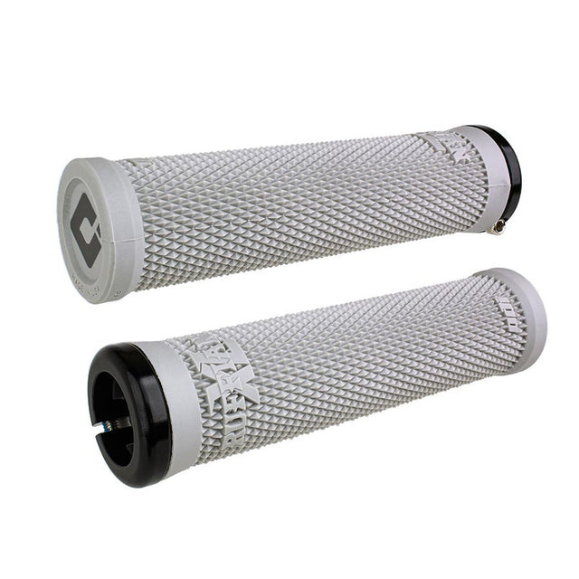 ODI Ruffian XL v2.1 Lock-On Grips - Gray. The newest addition to the ODI line brings a welcomed facelift to the iconic Ruffian Lock-On grip. Constructed of proprietary Soft Compound TPE material and featuring an intense extra large Ruffian diamondized pattern these grips provide exceptional comfort and control. The addition of the new v2.1 Single-Clamp Lock-On system makes installation a breeze and ensures that your grips stay put no matter what the conditions. Coming in four awesome colors to fit every riders needs. This new take on the classic Ruffian pattern puts the Ruffian XL in a category for riders who prefer comfort over feedback but still want exceptional control.Extra Large Ruffian Diamondized Pattern
