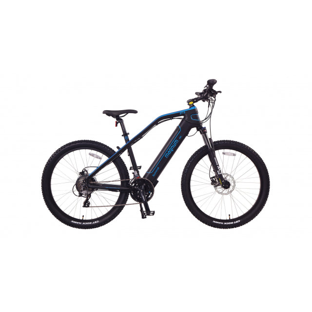 The Summit 29 is the larger wheel trail/mountain e-bike in the Magnum product line. It's stand out features are the fully integrated battery for a sleek design and a range of accent colors span the top of the down tube. 48v, 500w power system with max speed of 25 MPH with pedal assist and 20 MPH throttle only. The stunning design and high-end components will turn heads.