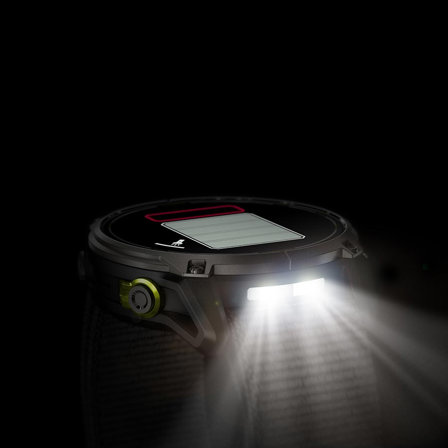 - You’re built to push limits — so is Enduro 3. This ultraperformance GPS smartwatch features a lightweight design and incredible battery life with solar charging that lasts up to 320 hours in GPS mode (assumes continuous use for entire period in 50,000 lux conditions). Light up the dark with the built-in LED flashlight, and enjoy long-distance comfort, thanks to a lightweight UltraFit nylon band.