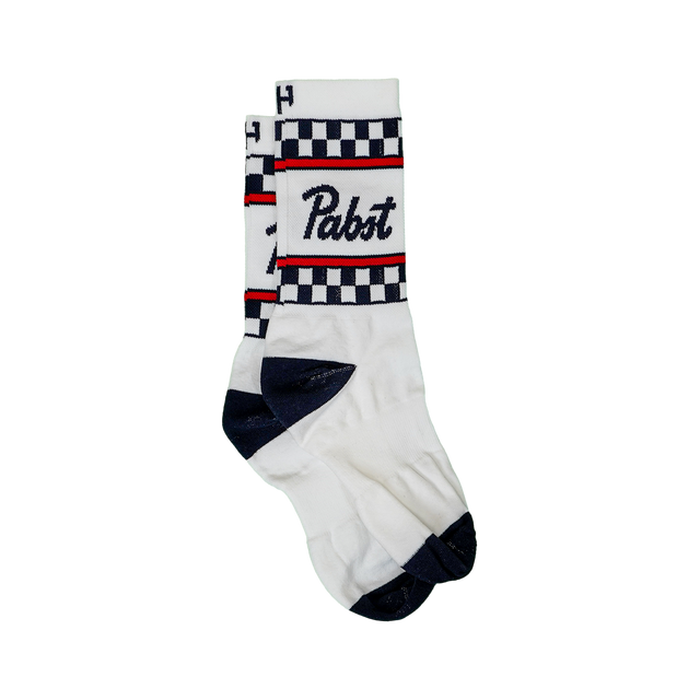 From the checkered flag straight to the barstool, the Pabst Blue Ribbon Racing socks are the perfect blend of race and party. You'll be lookin' fast turning over the pedals, and lookin' cool sippin' an ice cold PBR with them danglin' from a tailgate as well.