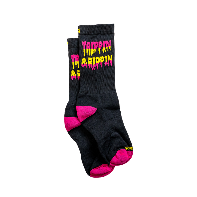 Fumbling your way down the trail? Seeing double? Having a good time? Throw on the second edition of our popular Trippin' & Rippin' socks and lock in tight to those pedals because you are probably in for the ride of your life!