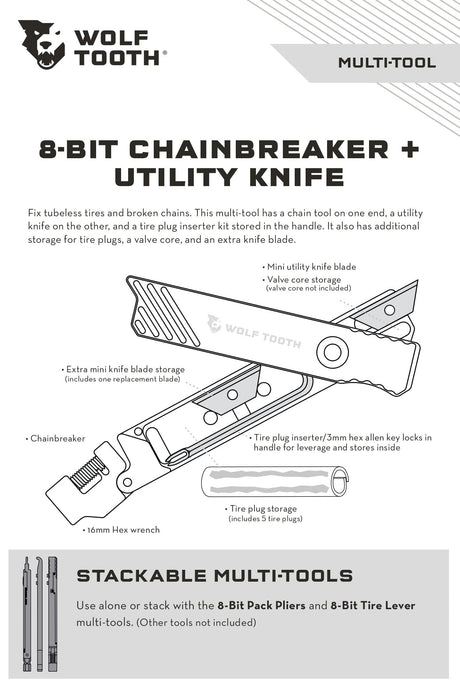 - Wolf Tooth Components - 8-Bit Chainbreaker + Utility Knife Multi-Tool Regular price $69.95 USDUnit price /Unavailable