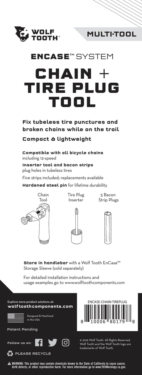 - Wolf Tooth Components - EnCase System Chain + Tire Plug Multi-Tool Regular price $49.95 USDUnit price /Unavailable