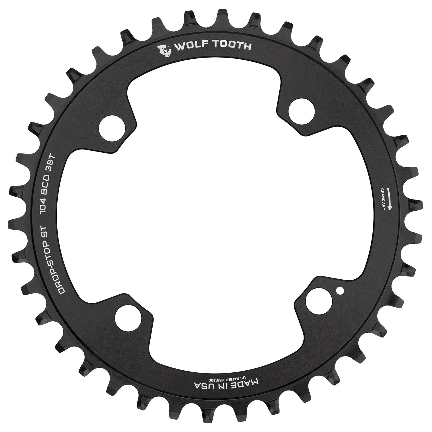 Drop-Stop technology. On Wolf Tooth’s patented wide/narrow chainring, the wide side of the tooth has maximum contact on the drive side which spreads the load and improves chainring life. The narrow side allows clearance for mud and debris which reduces friction.