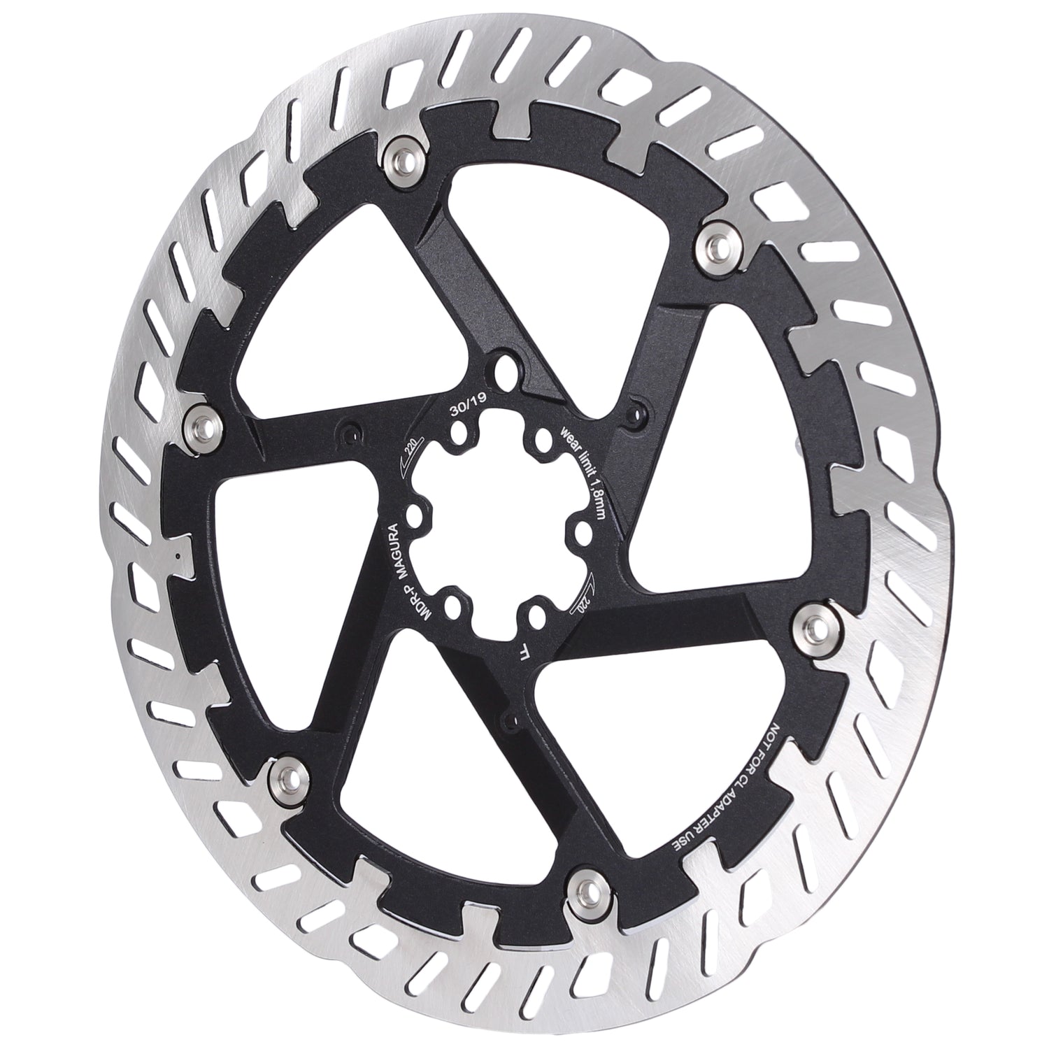 - Optimized for E-Bike but excellent for other demanding applications, DH/Enduro for example\n- Two piece design featuring Dovetail Interlink Technology, a patented interlocking of the outer and inner rings. Interlocking provides additional support when the outer ring expands due to heat\n- Magura rotors utilize a 2.0mm thickness for optimum performance\n- 6-bolt rotors include: (1) 6-bolt/44mmBCD rotor with (6) T-25 rotor mounting bolts \n- Not compatible with Center Lock adapters