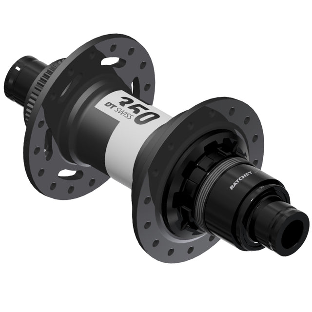 - Affordable Swiss performance\n- Size-optimized 72 tooth ratchets provide one of DT's fastest engaging hub; 5 degree\n- With DT's ratchet system, all of the teeth on each side of the ratchets engage simultaneously every time. This creates much smaller point loads and results in the legendary reliability of Ratchet System hubs\n- Center Lock disc\n- Steel cartridge bearings\n- Refined end caps allow for easier disassembly\n- HG 8-11sp: Not compatible with HG 11sp road cassettes \n- DT Swiss spoke calculator: https://spokes-calculator.dtswiss.com/en/calculator