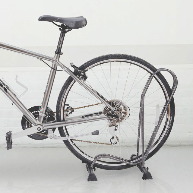 - Holds 1 bike and fits any wheel size \n- Great for Fat or Plus size tire bikes\n- DL3215 includes rubber feet to protect floors\n- DL3218 includes wheels for easy movement