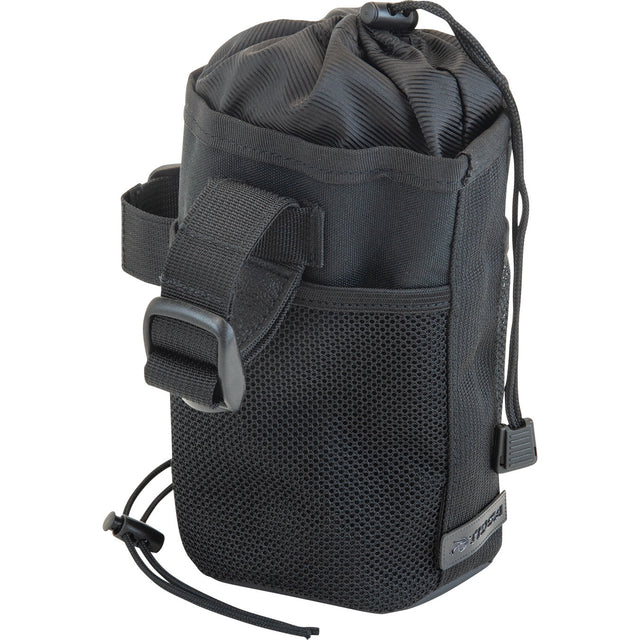 - May be mounted on either side (Left and right) of the stem\n- Insulated for warm or cool items \n- Opens / closes by drawstring \n- PU coated splash resistant 600 denier Nylon \n- Fits up to 160mm head tube circumference
