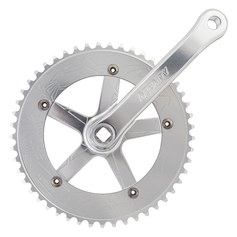 Bang for your buck� Original CNC machined and affordable price point. Precision CNC machined 144bcd crank. JIS square taper bb compatibility. 49t Affinity chainring and BB included. Polished silver or hard anodized finishes