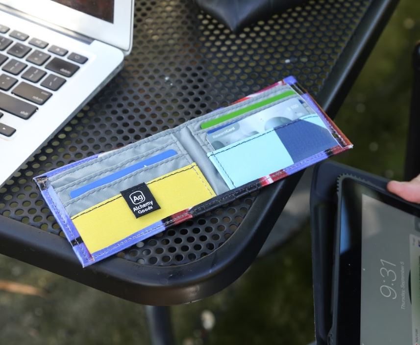 The Bellevue Wallet is our new bifold wallet made out of upcycled advertising banners. The Bellevue features 6 internal pockets for organizing your credit cards and one bill/cash pocket.