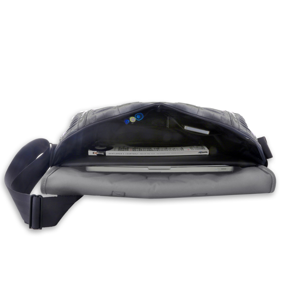 The Alchemy Goods Jefferson is a stylish and functional urban messenger bag. With a durable reclaimed bicycle inner tube exterior, the Jefferson has a clean modern look with a roomy, padded interior for a 17” laptop and other daily essentials.