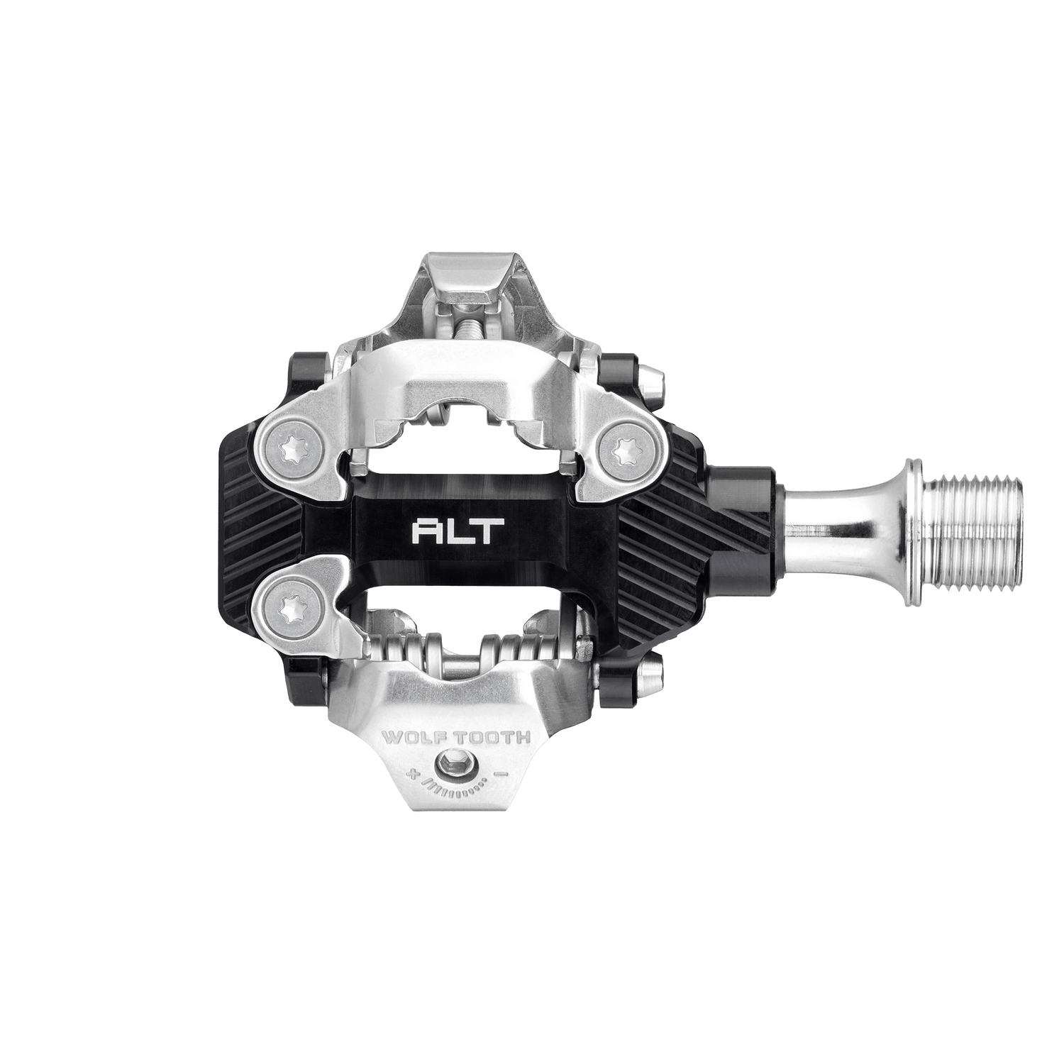 Wolf Tooth ALT XC Clipless Pedals are designed for commanding performance on trails and gravel roads. These pedals are simultaneously lighter and thinner than their Shimano, Hope, and HT counterparts, with an exceptionally low stack height, while also having more platform area for control and power transfer. This body design also features a more open center for better mud clearance than other clipless bike pedals. The SPD-compatible clip-in/out experience is quick and precise, with Wolf Tooth cleats included.