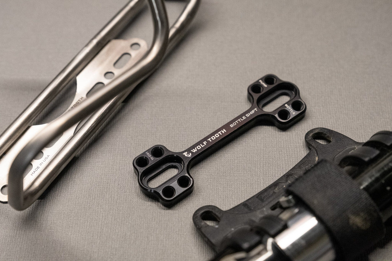 Bottle Shift is designed to offset a bottle to a more optimal location and make it possible to also mount a pump on frames with large downtubes. It is most commonly used on dual suspension frames where the water bottle is difficult to access because of interference with the top tube or shock. By shifting the bottle slightly off center and tilting it outward, clearance is greatly improved.